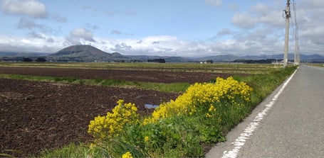 毎年この頃になると、薬来山(宮城県加美町)が和菓子のような色合いになってきます。ウグイス餅でしょうかね😆