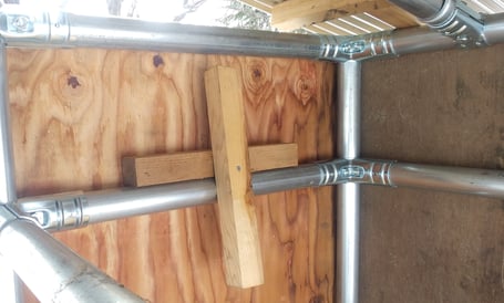 それから、単管パイプと薪を置く板と周囲の板をどうしたら一体化して強い構造にするか。