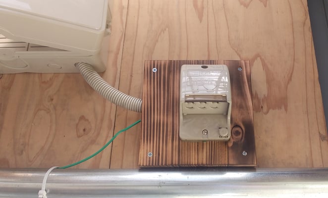 ということで、検電器も使って、今回このコンセントを設置できたことで、初めて作業場内で電気が使えるようになります。