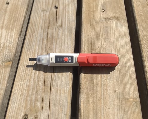 この検電器の代わりにテスターを使う方法もありますが、テスターを使うとなると結構面倒なので、やはりこの検電器が便利だと思います。