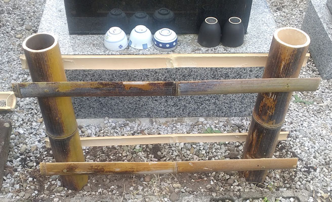 この卒塔婆立ては、石やステンレス製のものが多いのですが、私はこの竹製が気に入っています。