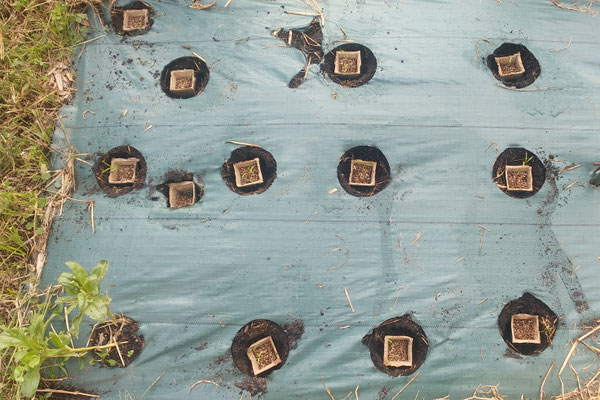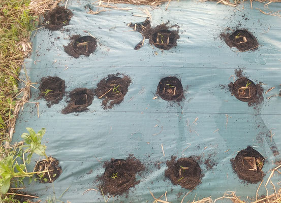 ちなみに、定植した場所は雑草地帯で、防草シートを張って穴を開けだけの所です。