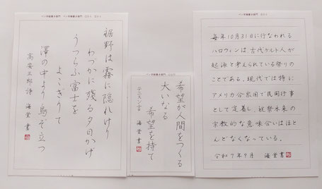 つまり、ガイドライン(下線)が見えたり、残りの空間の程度が分かったりしますので、文字が水平に書けたり、欄の中に文字がバランスよく収まるように書けたりします。