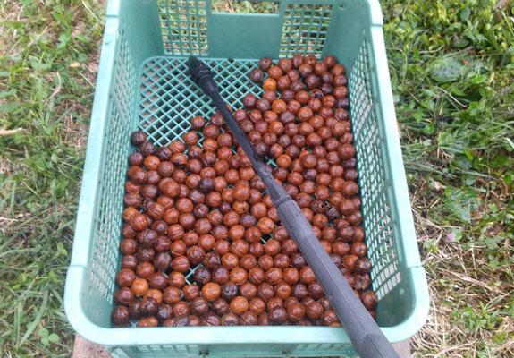 そして、クルミを200個拾い、合計で3千個くらいになったので、最初に拾った分に高圧洗浄機をかけました。