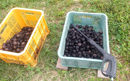 皮が乾燥するまで放っておくと、皮と実がくっついてしまい、高圧洗浄機でもうまくはがれなくなるからです。