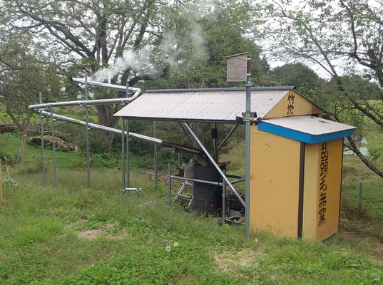 今日(10/11)は、朝早く起きて竹炭焼きをしました。