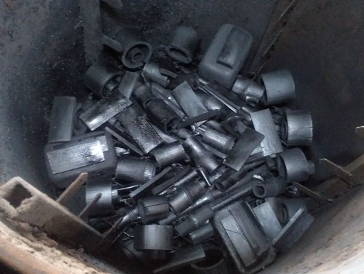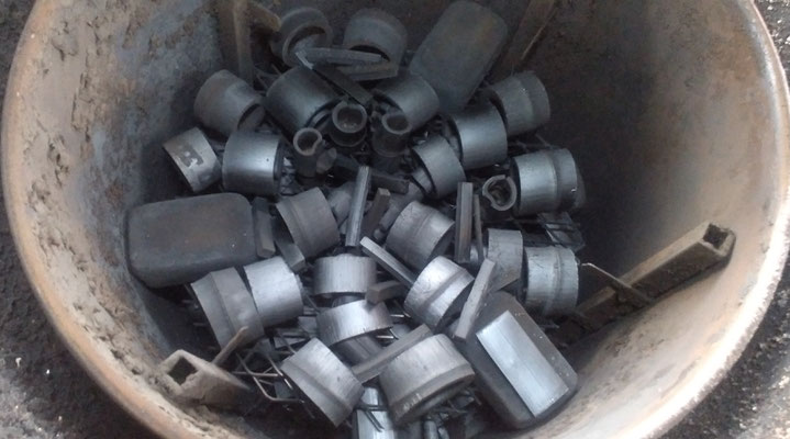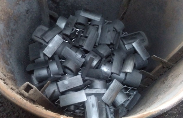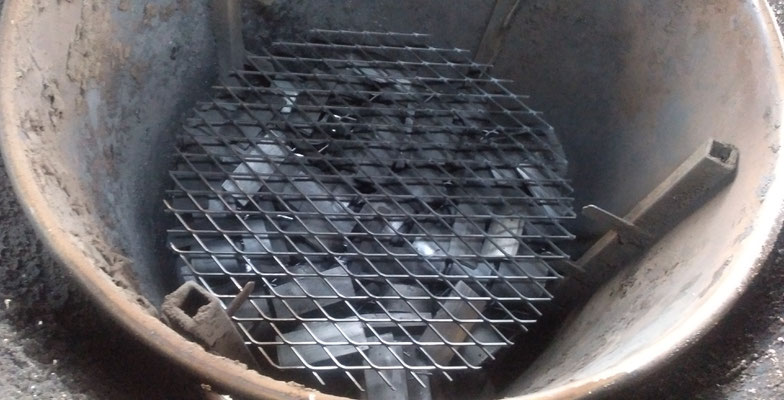 予想では、竹の水分の抜けが下の方が悪いから、網状のエキスパンドメタルを使えば水分の抜けが良くなり、下の方の段の竹炭の質が改善するはずでした。