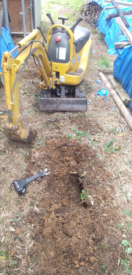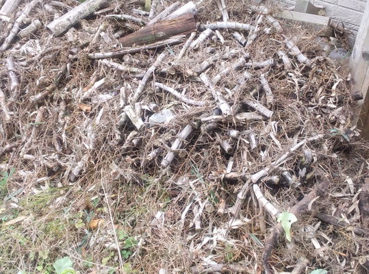 以前はこの地下茎も炭にしていたのですが、土に帰す方法もありかなと思い、試してみることにしました。