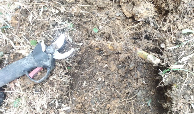 それと、今回は、地下茎を掘り上げるのではなく、電動剪定鋏でカットするだけにしました。
