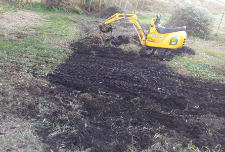 でも、実際にやってみると、ミニユンボでなだらかな傾斜をつけるのは意外に面倒だということが分かりました。