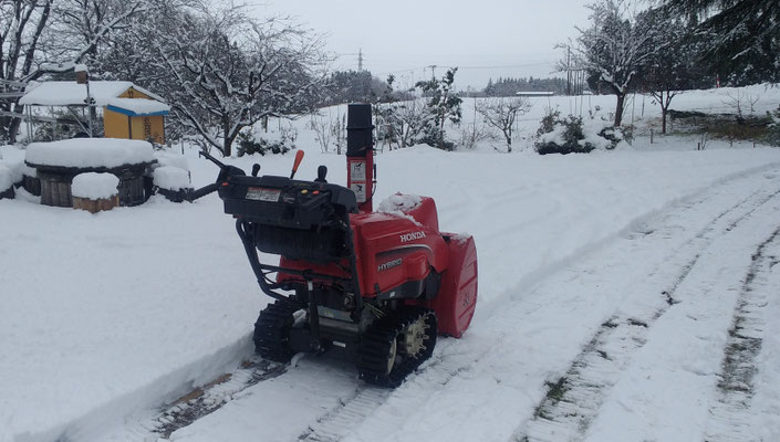 で、雪が雨に変わってきたので急いで除雪機を出しました。