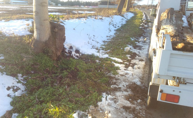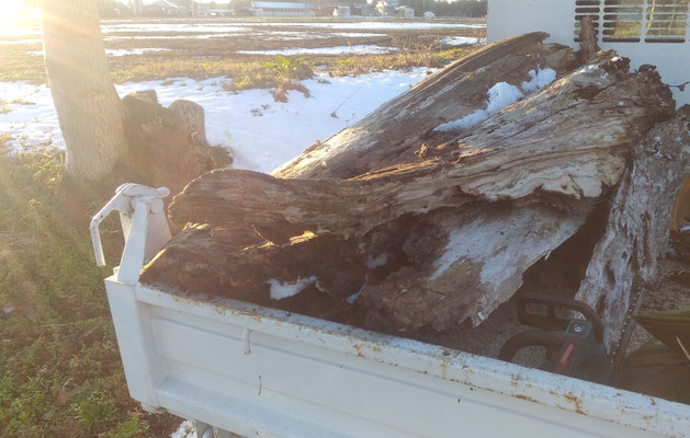 チェーンソーで切るなどして軽トラで持ち帰り、いずれ乾燥したら、炭焼きの際の薪に使う予定です。