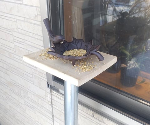 ここは軒下なので、雨に当たってエサがふやけてしまったり、雪に埋まってしまったりすることもないと思います。